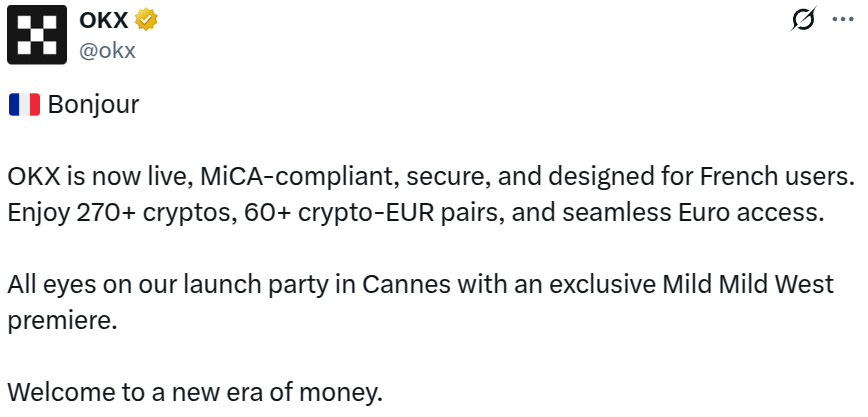 Конкуруючий бірж криптовалюти OKX також оголосив у середу, що запустив повністю регульований централізований обмін криптовалютами у Франції через паспорт MICA. Генеральний директор Okx Europe Erald Ghoos заявив, що Франція є ключовим ринком для фірми, і їх розширення є “головна віха в нашому європейському розширенні”.