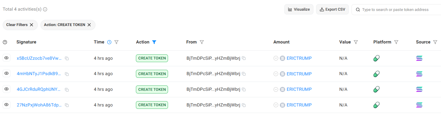 Розгортання, що стоїть за фальшивим токеном Еріком Трампом, також створив три інші токени Еріка Трампа, які не вдалося на насос.