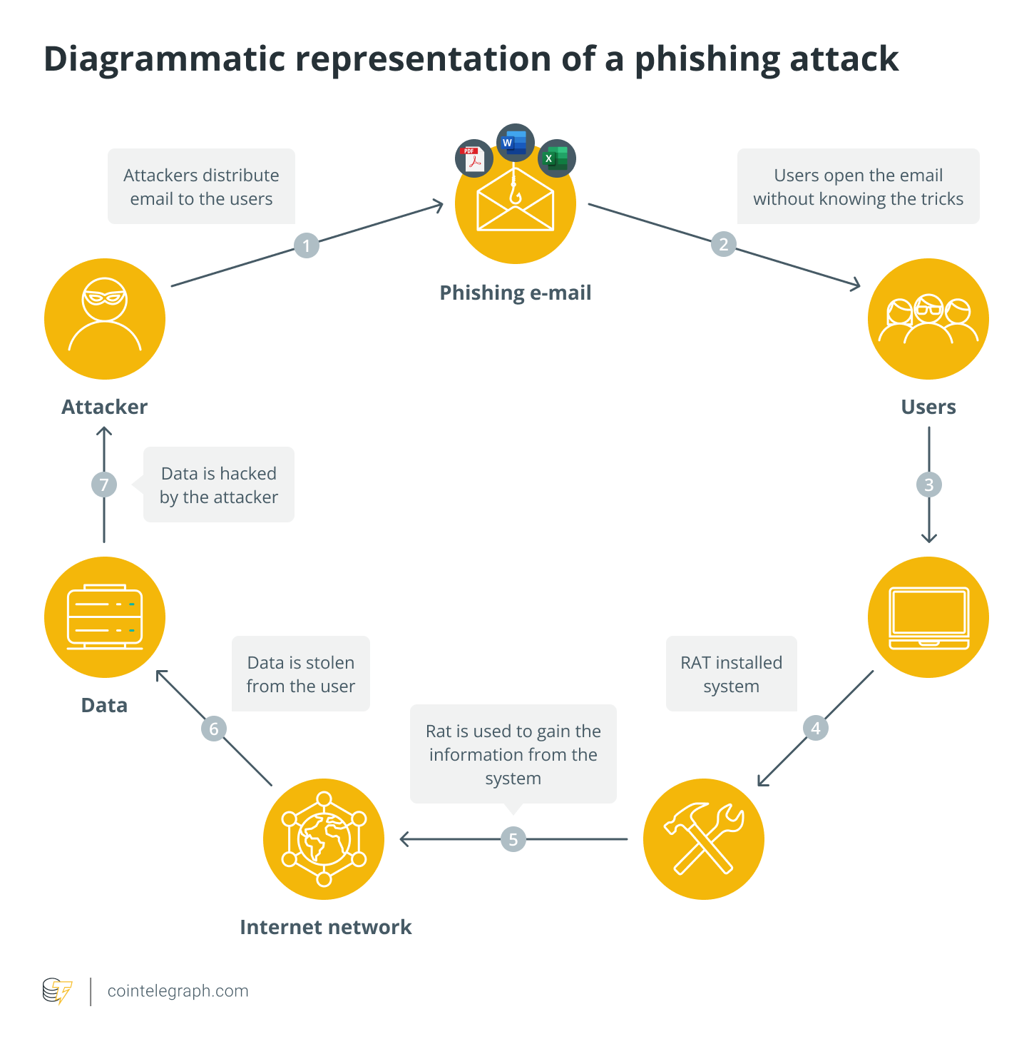 Фішинг — це поширена атака в криптографії, коли зловмисники прагнуть отримати доступ до гаманця шляхом підробки законних веб-сайтів або електронних листів, щоб обманом змусити користувачів криптовалюти поділитися своїми особистими ключами.