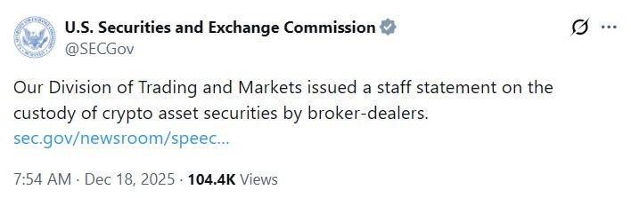 Хоча ця заява не є правилом, вона дає ясність щодо того, як регулятори США очікують, що токенізовані цінні папери відповідатимуть традиційним ринковим гарантіям.