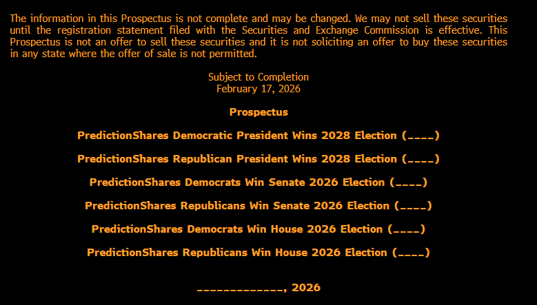 У вівторок компанія Bitwise подала проспект емісії нової лінійки ETF під назвою PredictionShares із шістьма ETF у ринковому стилі прогнозів на NYSE Arca.