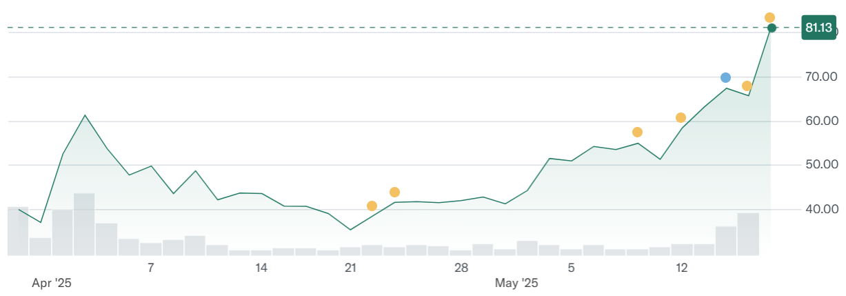 Акції востаннє бачили, як торгували близько 81 доларів, що на 23% на день.