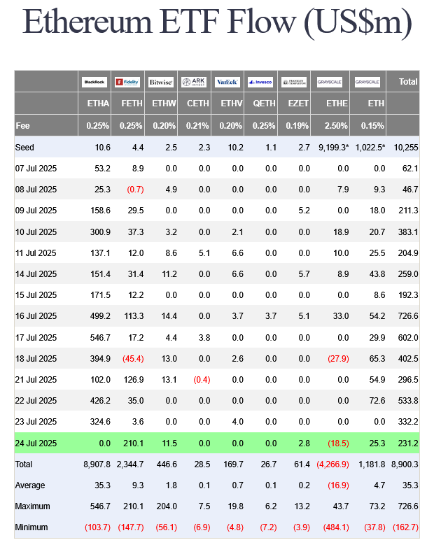 Ефір ETF також випереджав ETF Bitcoin для кожного з останніх шести торгових днів.