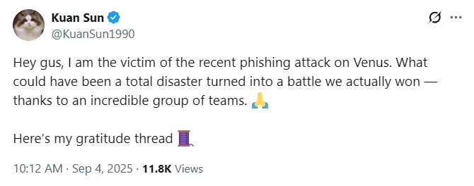 Протокол децентралізованих фінансів (DEFI) Платформа Венери допомогла користувачеві відновити викрадену криптовалюту після фішингової атаки, пов’язаної з групою Лазару Північної Кореї.