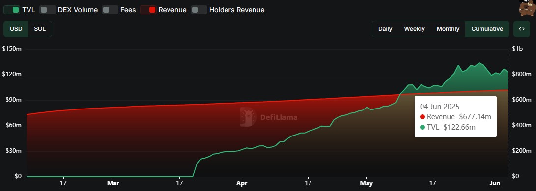 Станом на 4 червня агрегатор даних Defillama показує, що протокол Pump. Fun заробив накопичувальний дохід у розмірі близько 677 мільйонів доларів.