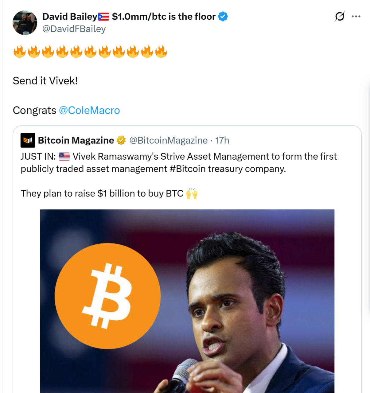 7 травня керівництво активами, засноване підприємцем та колишнім кандидатом у президенти Вівек Рамасвамі, також розкрило плани переходу в біткойнську казначейську компанію.