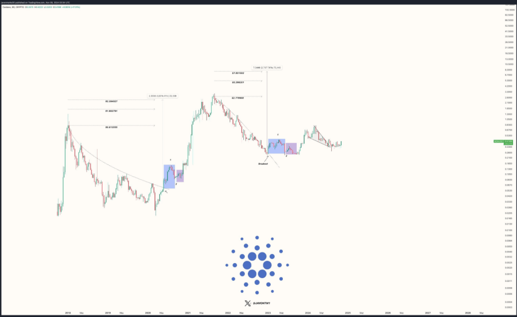 Cardano тільки спостерігає свій сплеск, оскільки загальний ринок криптовалют наповнюється новим імпульсом. Ціна біткойна наближається до 100 000 доларів, а нещодавні президентські вибори в США приносять такий необхідний оптимізм щодо запровадження більш дружньої політики щодо криптовалют. Таким чином, позитивний контекст стане попутним вітром для ADA та інших альткойнів.