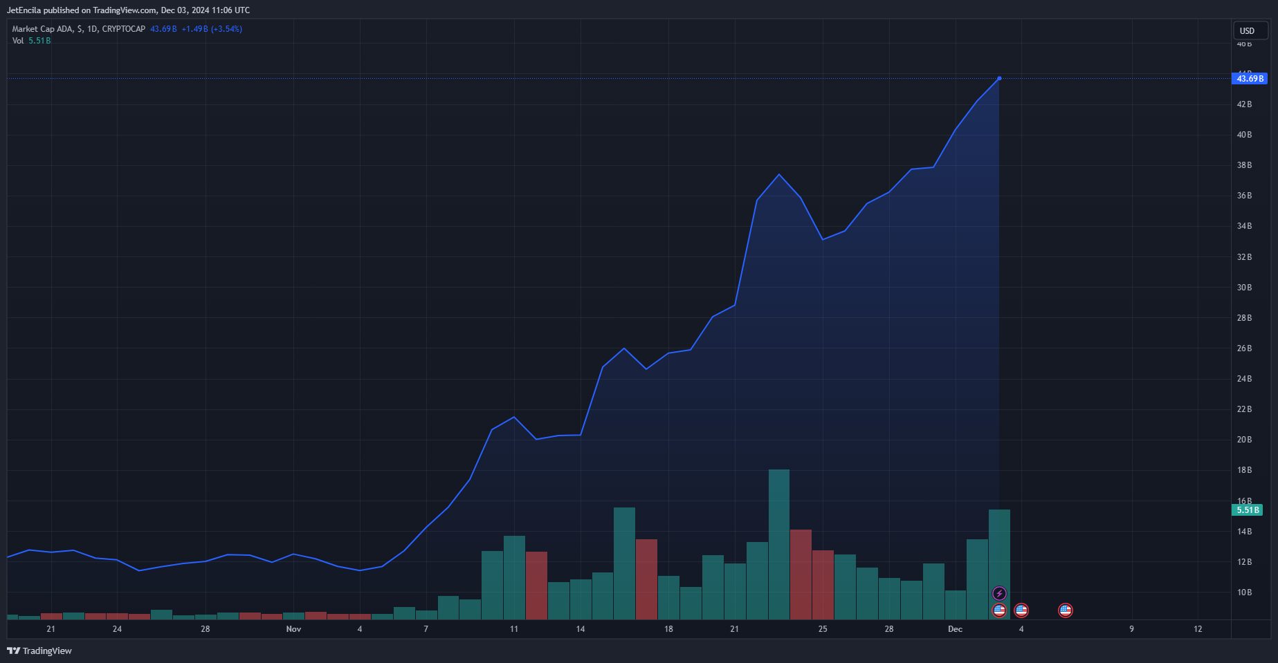 Ринкова капіталізація ADA зараз становить 43,6 мільярда доларів. Графік: TradingView.com