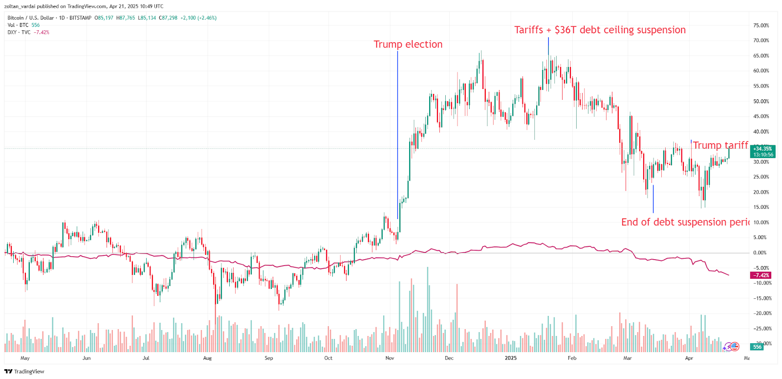 Біткойн коротко піднявся понад 87 700 доларів вперше за майже три тижні, оскільки президент США Дональд Трамп оголосив про взаємні тарифи на імпорт 2 квітня.