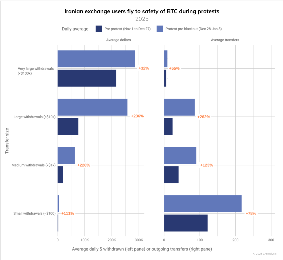 Chainalysis сказав, що роль біткойна (BTC) під час заворушень в Ірані не обмежується лише збереженням капіталу;це також стало «елементом опору, що забезпечує ліквідність і необов’язковість у дедалі обмеженішому економічному середовищі».