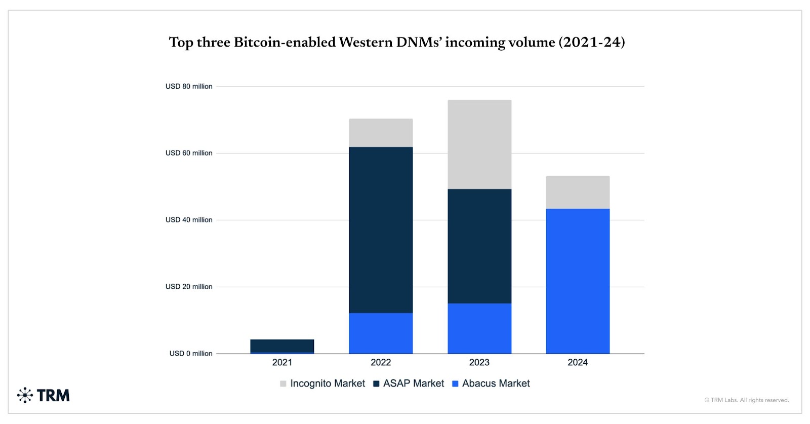 Його частка екосистеми, що підтримує біткойн, також зросла до понад 70%, після закриття ASAP та захоплення правоохоронних органів на ринку інкогніто в березні 2024 року.