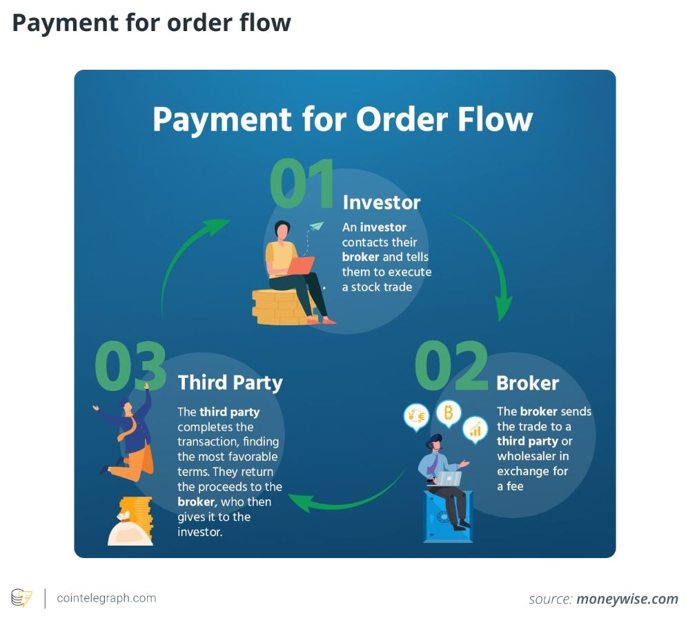 Брокерські фірми, що використовують PFOF, отримують плату за направлення замовлень та здійснення торгів на певного виробника ринку або біржі, як правило, у частках копійки на акцію.