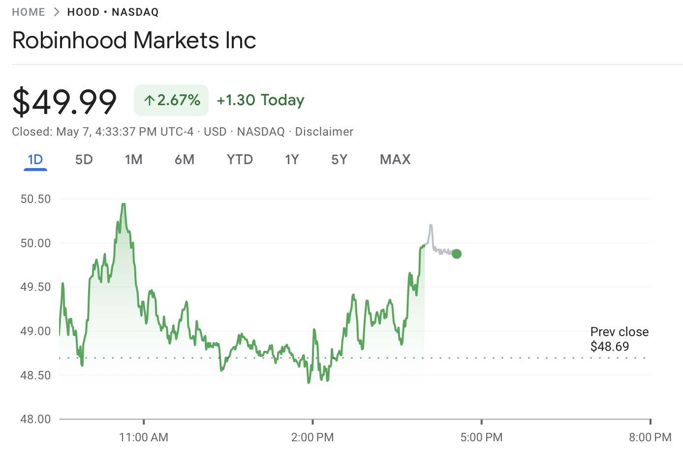 За даними Google Finance, акції Robinhood зросли на 2,7% на NASDAQ. Дохід компанії впав на 8,6% у першому кварталі 2025 року, хоча він все ще переміг оцінки Уолл -стріт.