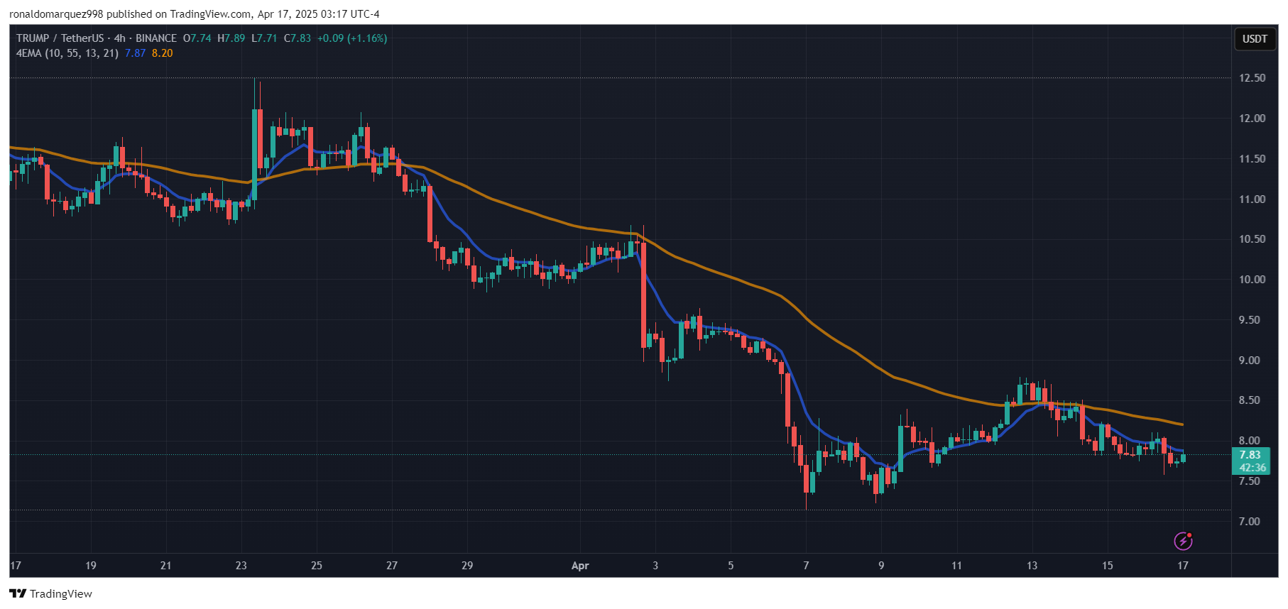 4-годинна діаграма показує зниження ціни Трампа. Джерело: Trumpusdt на TradingView.com
