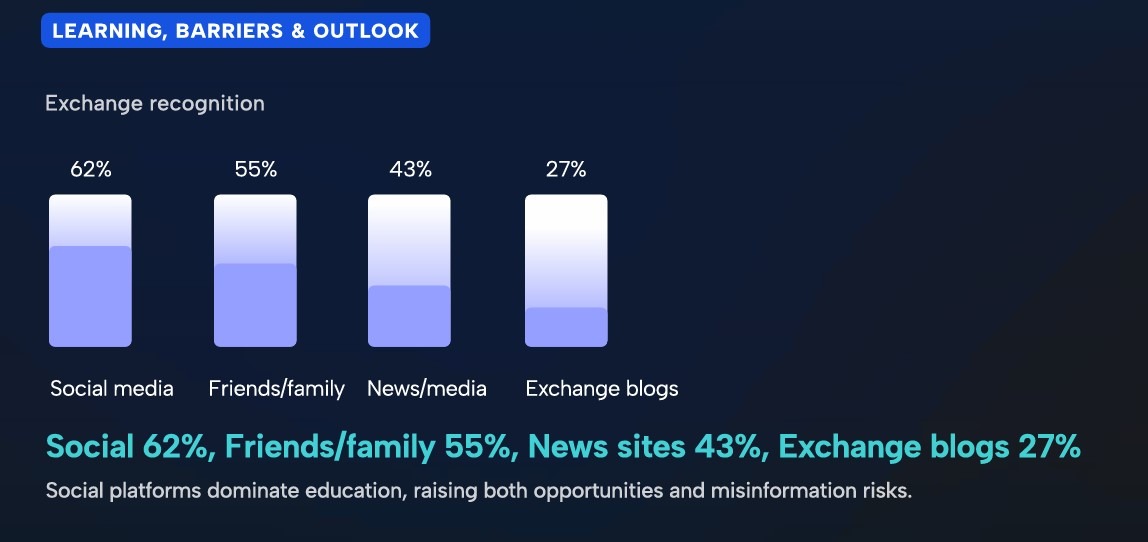 Результати показали, що 62% респондентів назвали соціальні мережі основним джерелом навчання криптовалютам. Дослідники відзначили, що це підвищує як можливості, так і ризики дезінформації.