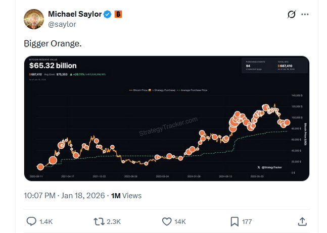 Голова Strategy часто дражнив майбутні купівлі біткойнів через X у такий спосіб і не показав жодних ознак уповільнення своїх покупок біткойнів у 2026 році.