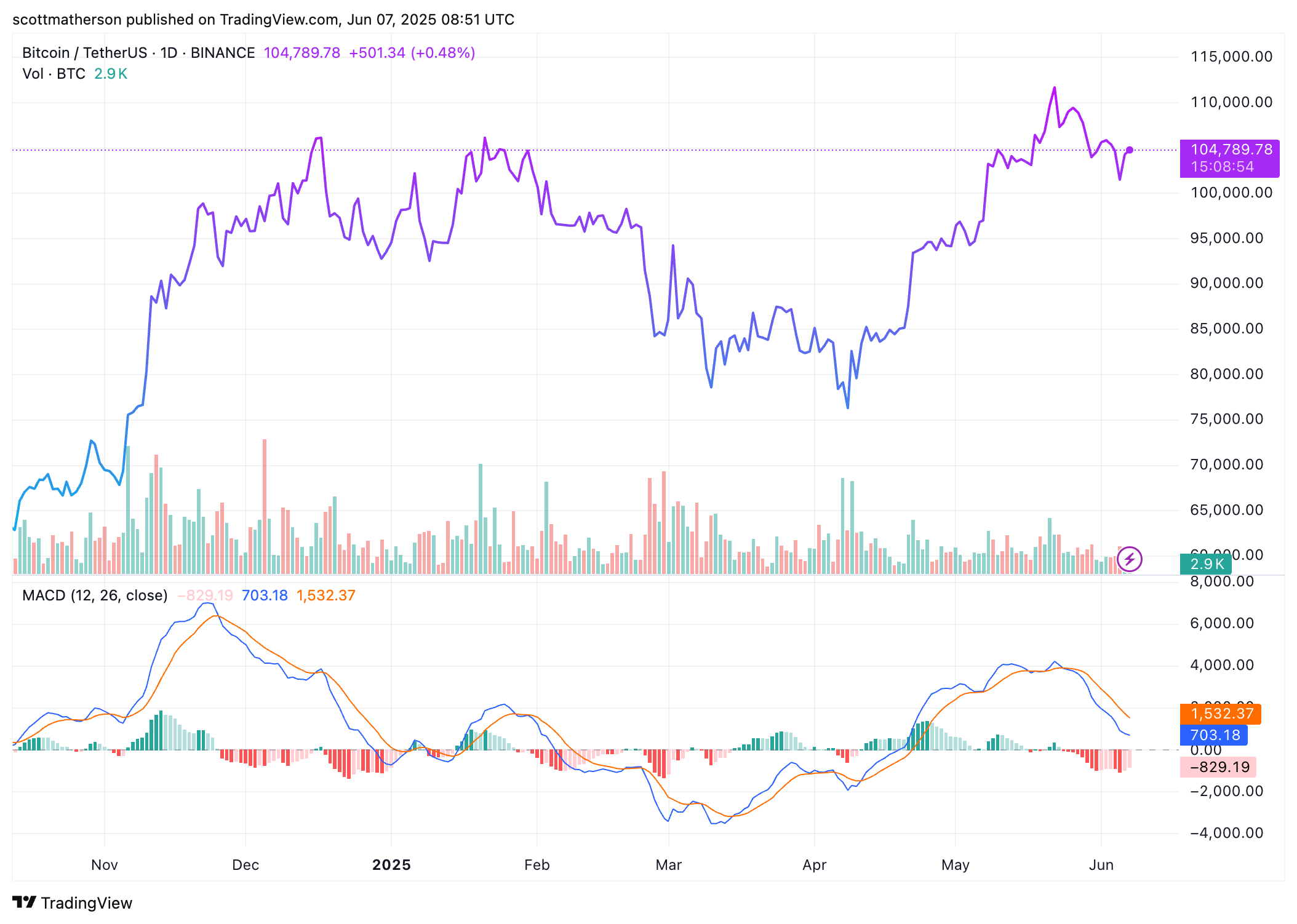 BTC Trading на рівні 104 789 доларів на графіку 1D |Джерело: BTCUSDT на TradingView.com