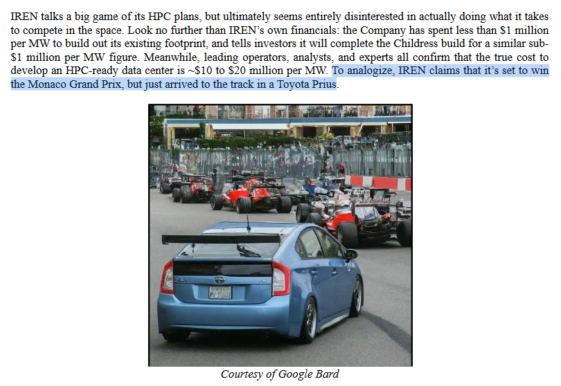 Сильні показники Ірен в пізній час відбудуться приблизно через рік після того, як фірма-короткопродажна компанія Culper Research заявила, що Ірен “дико завищена” і критикувала компанію за те, що він розмовляв “великою грою” про високоефективні обчислення, не вкладаючи достатньо інвестицій, щоб серйозно конкурувати в AI.