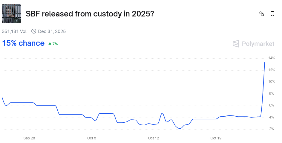 Інший ринок щодо того, чи буде SBF «Звільнений з-під варти у 2025 році» зріс з 4,3% до 19,1%, а потім знову впав до 15,5%.