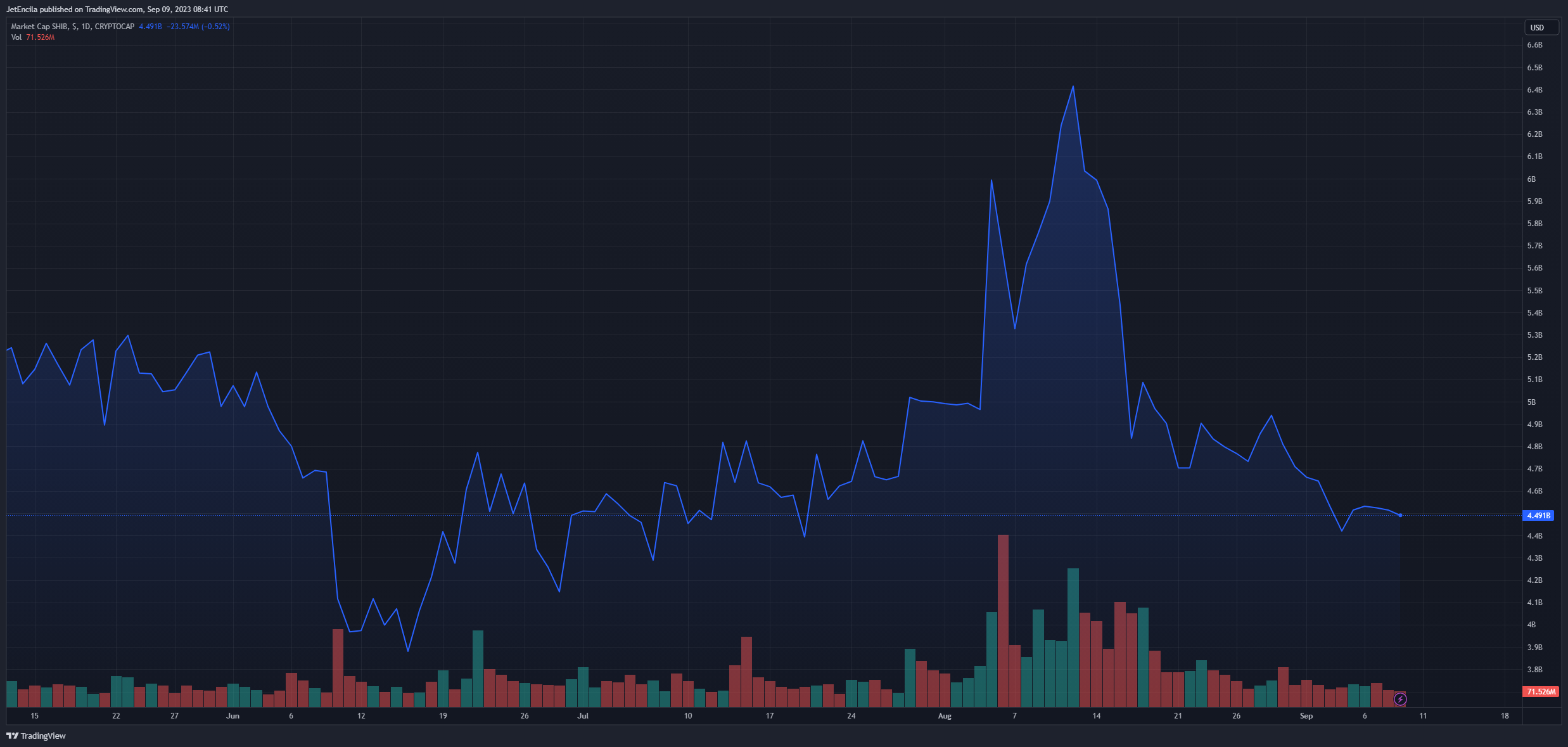 Коли ми вступаємо в останній квартал року, ціна Shiba Inu показала досить тьмяні показники. Токен коливався небезпечно близько до своїх мінімумів липня/серпня, кидаючи тінь сумніву на оптимізм, який колись його оточував. Насправді нещодавній аналіз цін показує, що SHIB відмовився від понад 70% прибутку, досягнутого під час літнього сплеску.