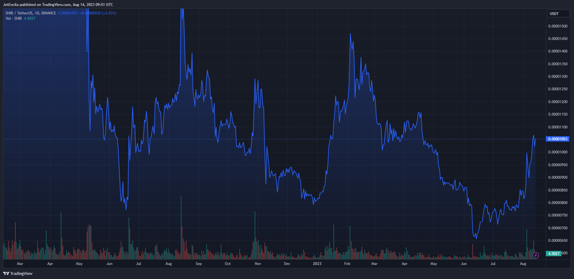Shiba Inu зараз торгується на рівні $0,00001052. Графік: TradingView.com