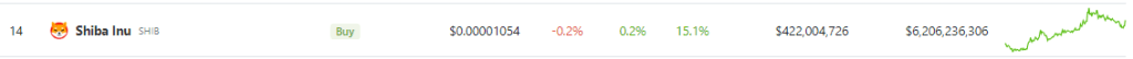 Цінова акція SHIB сьогодні. Джерело: Coingecko