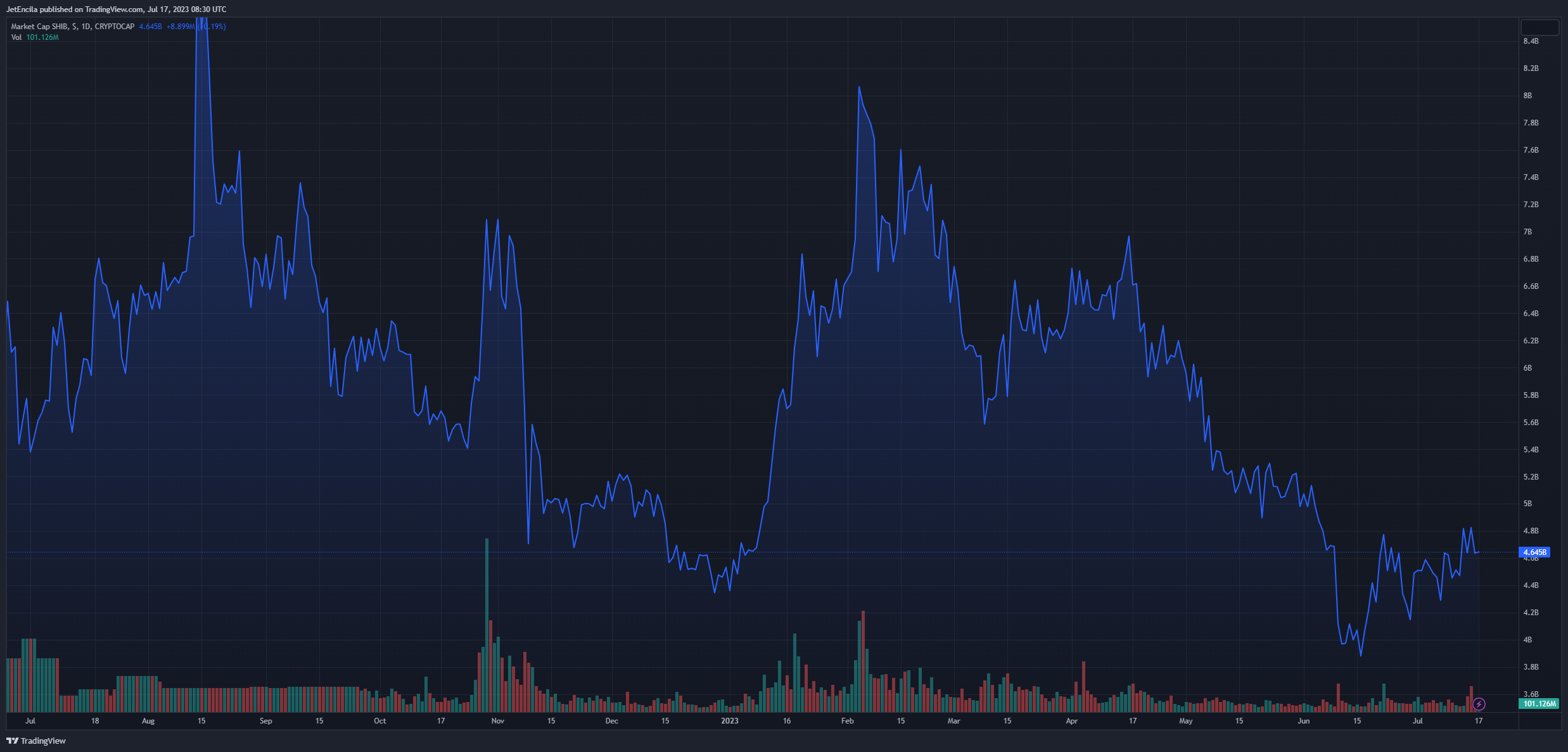 Ринкова капіталізація Shiba Inu (SHIB) наразі становить 4,6 мільярда доларів США на щоденному графіку: TradingView.com