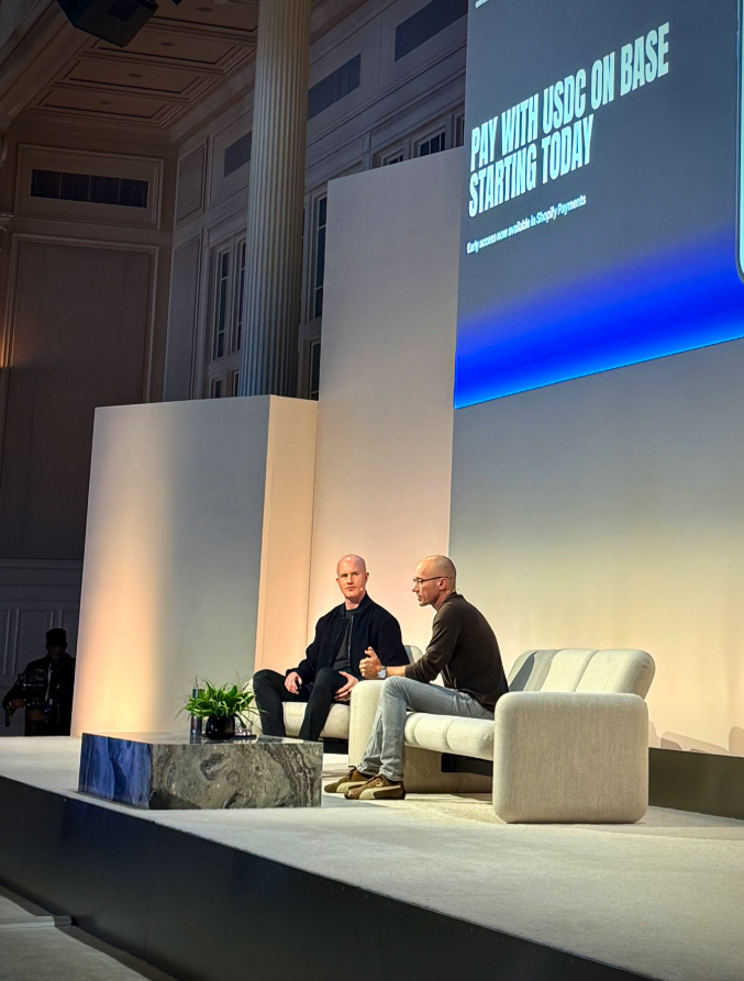Генеральний директор Coinbase Брайан Армстронг (зліва) та генеральний директор Shopify Тобі Лутке, який оголошує платежі USDC Shopify на базу. Джерело: Tobi Lutke