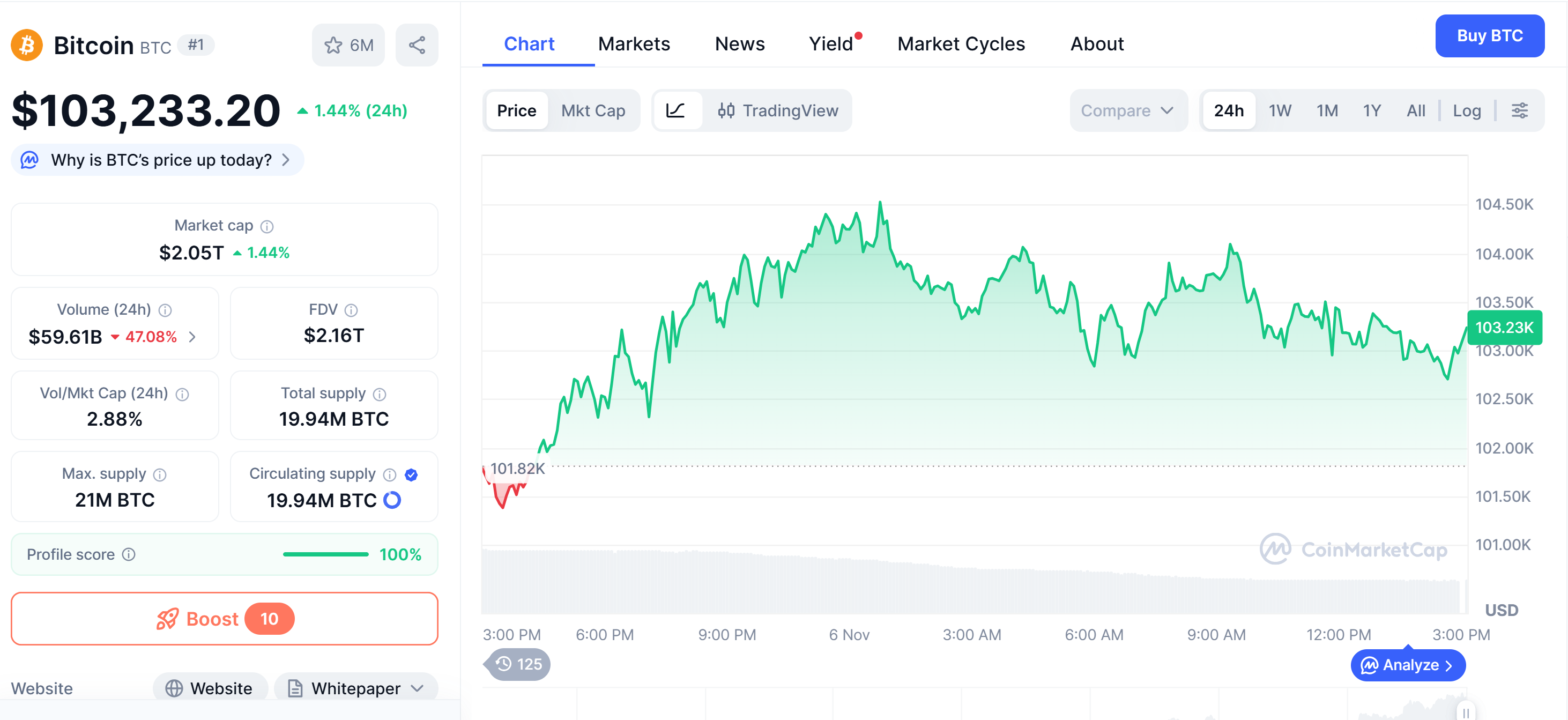 Оскільки BTC зараз торгується на рівні близько 103 200 доларів, активи ITER у біткойнах коштують понад 10 мільйонів доларів. Згідно з даними CoinMarketCap, ця схованка коштувала понад 12 мільйонів доларів на початку жовтня, коли біткойн досяг свого історичного максимуму в 126 198 доларів.