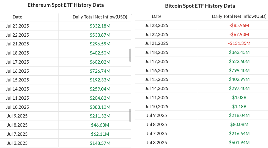 Ефію ETF побачили різкий сплеск притоку в липні, тоді як біткойн ETF втрачає пар.
