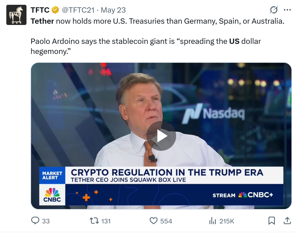 Він додав, що StableCoins стали масовими покупцями скарбників США, а Tether (USDT) лише в минулому році приносила 13 мільярдів доларів прибутку, зберігаючи близько 113 мільярдів доларів боргу в США.”Токенізовані гроші – це база токенізованої фінансової системи”, – сказав Гурвіц, називаючи останні фінансові інновації, побудовані на цьому фонді “захоплюючим”.