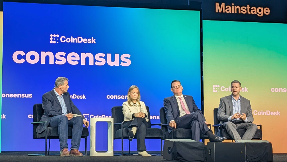 Зліва: Ян Еллісон, репортер Coindesk, Jelena Ddjuric, генеральний директор Noble, Кайл Хауптман, голова адміністрації Національного кредитного союзу, Джозеф Спіро, директор продуктів Digital Assets в DTCC Digital Assets. Джерело: Cointelegraph