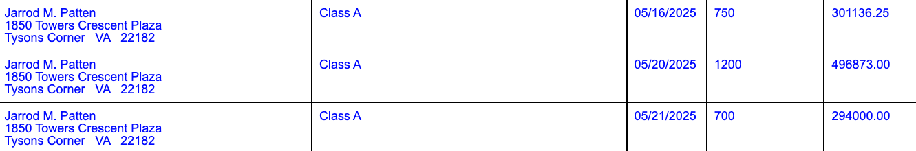 Відповідно до звіту про стратегію запропонованого продажу цінних паперів, поданих 22 травня, Паттен продав 2650 мдрів акцій у період між 16 та 21 травня, вартістю майже 1,1 мільйона доларів.