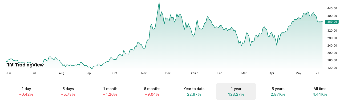 За даними TradingView, акції стратегії стягувались до закриття минулого тижня на рівні 369 доларів, але торгували на 1,6% вниз на попередньому ринку.