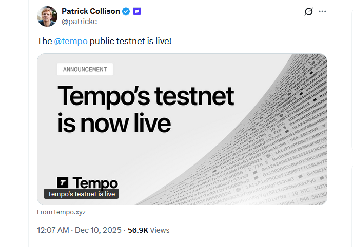 Спільний блокчейн-проект Stripe і Paradigm Tempo запустив свою першу публічну тестову мережу, ознаменувавши великий крок вперед у запуску офіційного блокчейну рівня 1.
