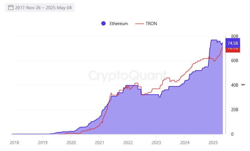 Мережа TRON наблизилася до відновлення лідерства від Ethereum в обігу тетера після чергового великого монетного монетного монетного монетного монетного монетного монетного двору американського емітента StableCoin.