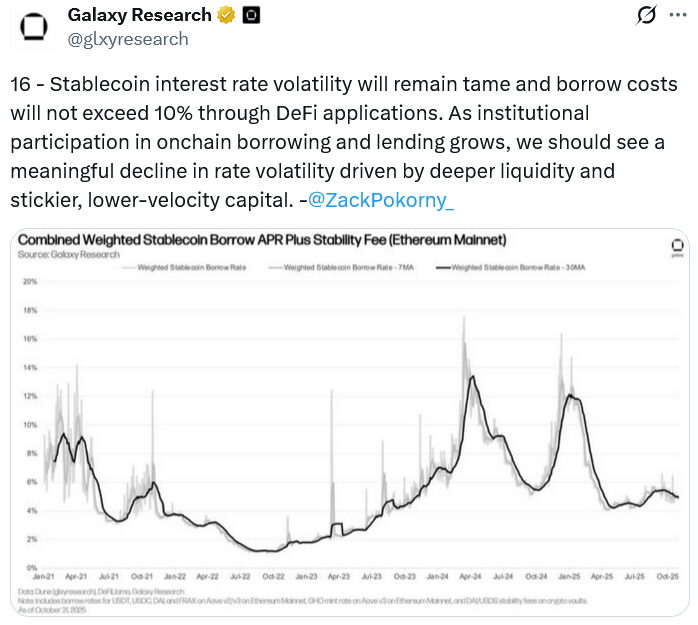 Раніше цього місяця криптовалютна інвестиційна компанія Galaxy Digital передбачила, що принаймні один банк зі списку Fortune 500, хмарний провайдер або платформа електронної комерції запустять блокчейн рівня 1, який у 2026 році забезпечить реальну економічну діяльність на суму понад 1 мільярд доларів, і побудує міст для децентралізованого доступу до фінансів.