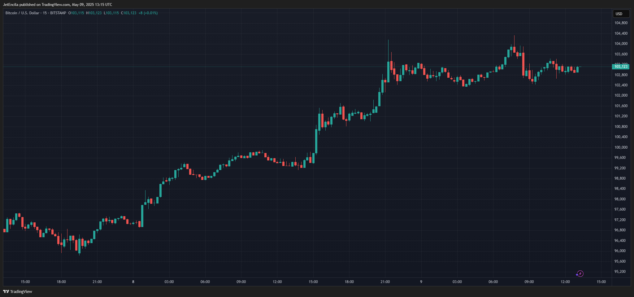 BTCUSD торгує 103,115 доларів на 24-годинній діаграмі: TradingView.com