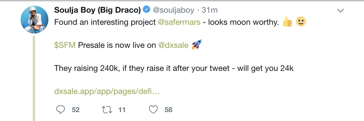 У лютому 2022 року Soulja Boy та кілька інших знаменитостей зі списку A були названі в колективному позові за їх нібито участь у схемі викачування та скидання, пов’язаної з токеном SafeMoon.