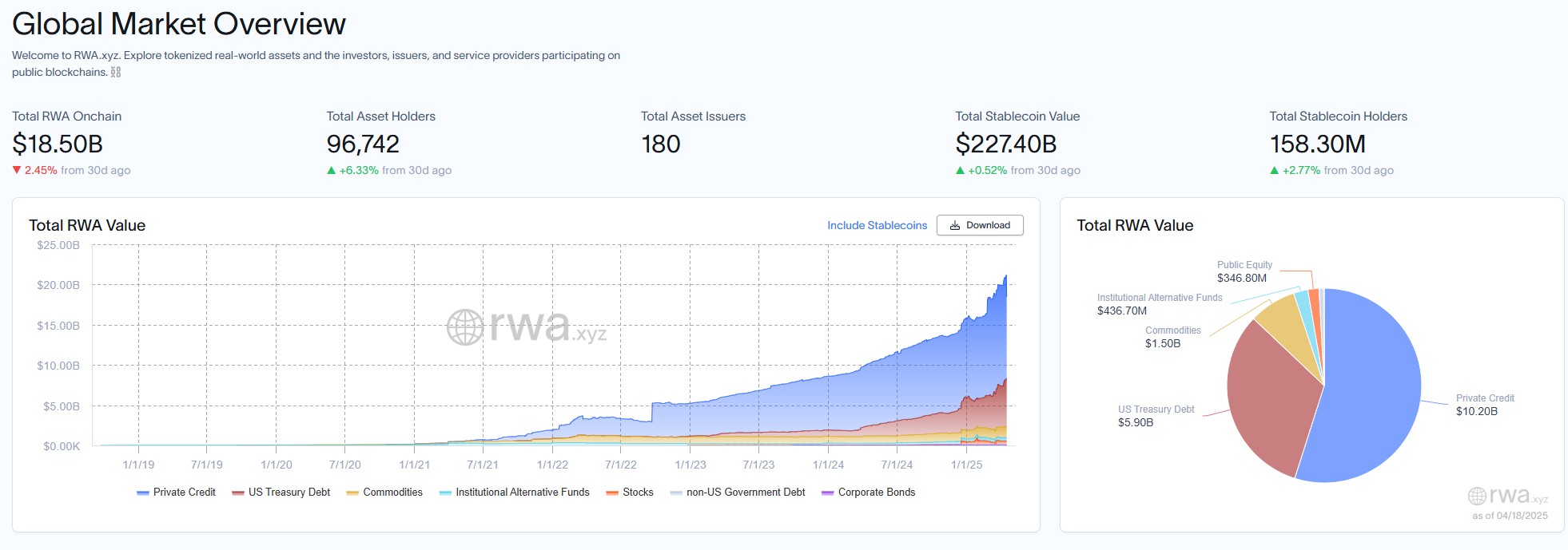 Це являє собою лише загальний ринок RWA, який коштує на 18 мільярдів доларів, показують дані.
