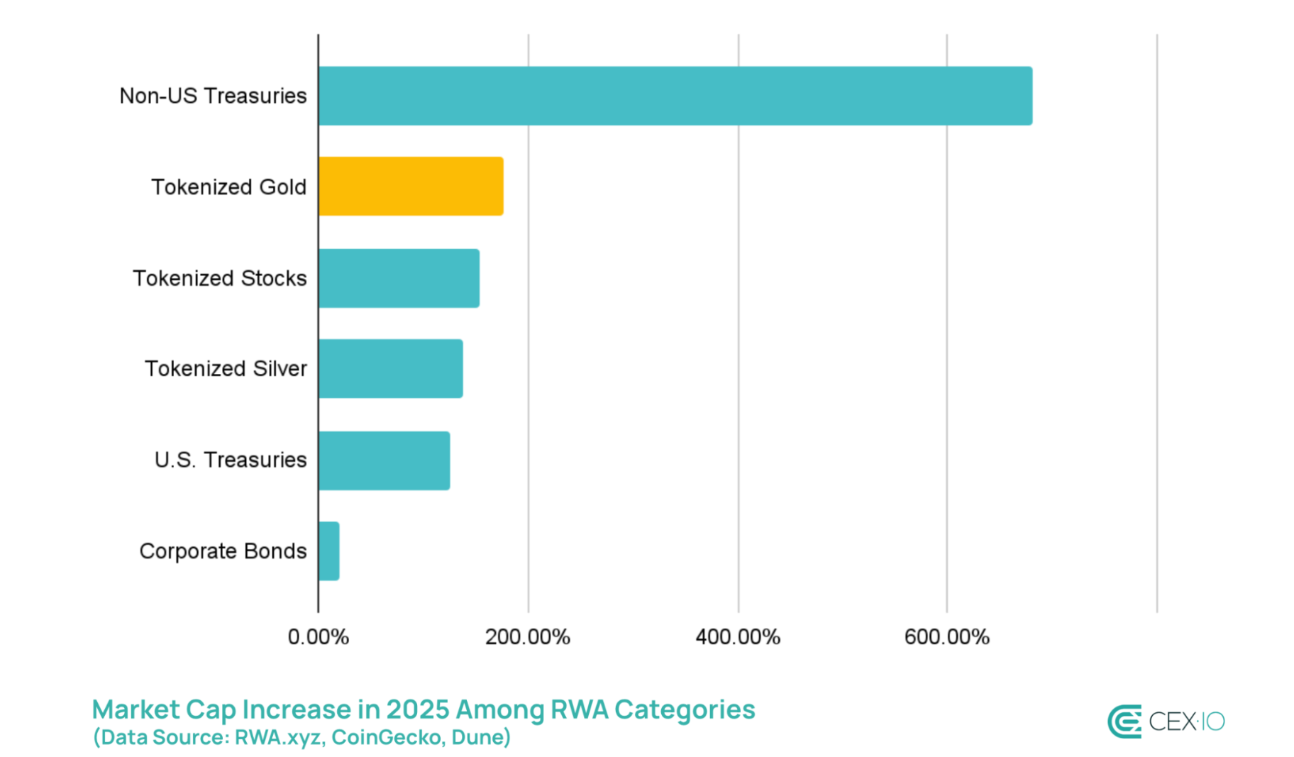 Ринкова капіталізація сектора зросла на 177%, значно випередивши більш широкий ринок золота та більшість основних спотових золотих ETF, тоді як кількість власників зросла майже втричі з більш ніж 115 000 нових гаманців. Зростання склало приблизно чверть усіх чистих надходжень у сектор реальних активів (RWA) і перевищило загальне зростання токенізованих акцій, корпоративних облігацій і казначейських облігацій не США.