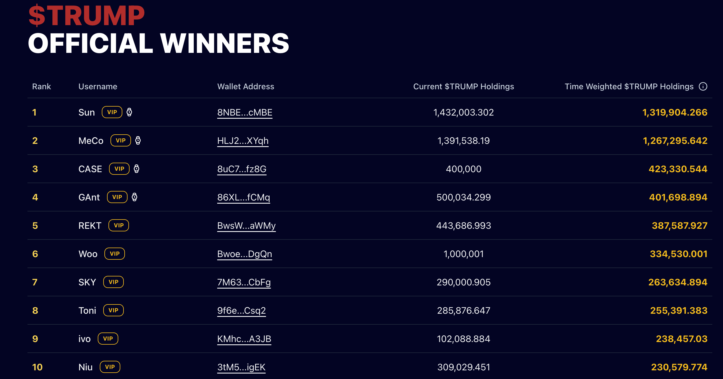 Список головних власників Memecoin президента США Дональда Трампа був доопрацьований напередодні перевірки, щоб подати заявку на вечерю та “VIP Tour” з Президентом 22 травня.