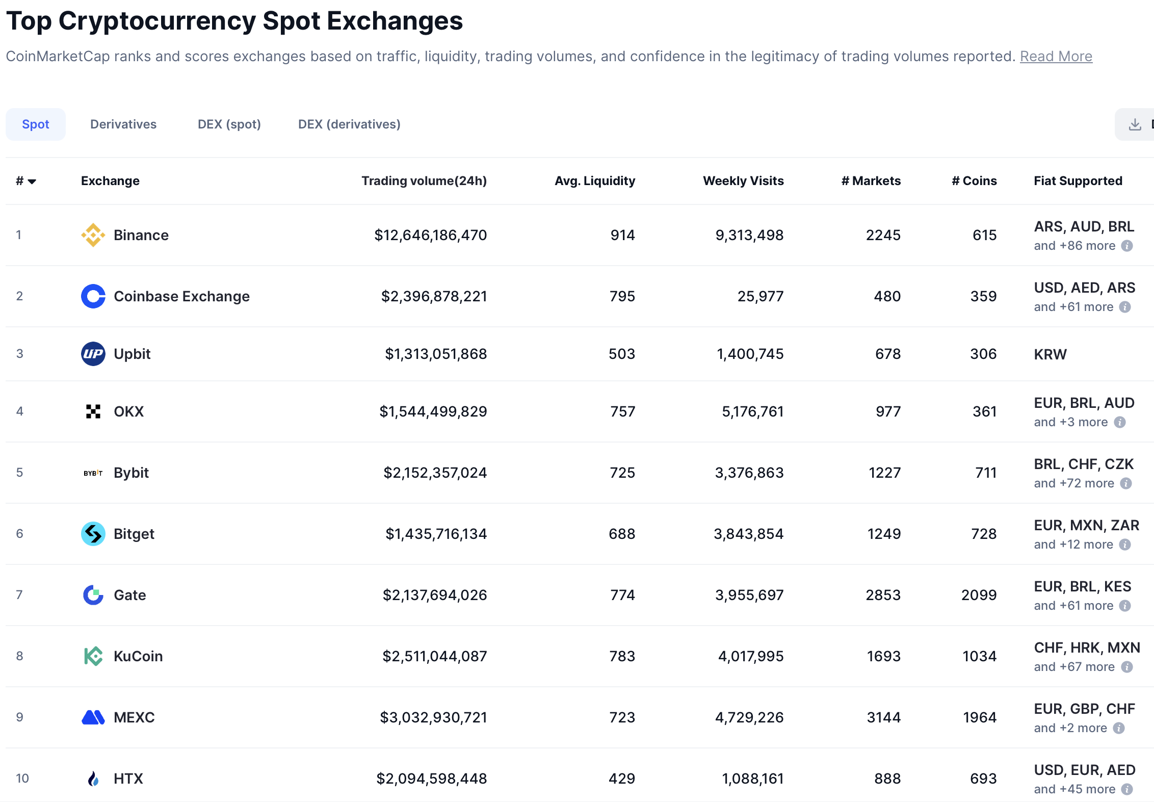 За даними CoinMarketCap, HTX входить до 10 найбільших бірж світу за обсягом торгів, ліквідністю та трафіком платформи.