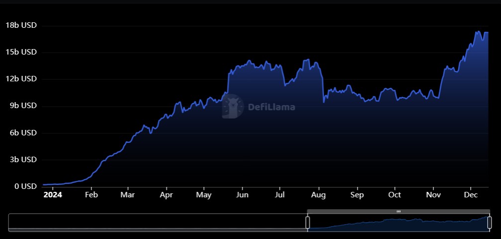 У 2024 році загальна блокована вартість (TVL) ліквідних протоколів Ethereum зросла майже на 6000%, оскільки цього року зріс попит на корисні активи.