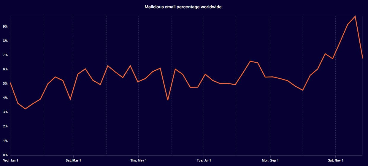 За даними гіганта інтернет-інфраструктури Cloudflare, понад 5% усіх електронних листів, надісланих у всьому світі, містять шкідливий вміст.