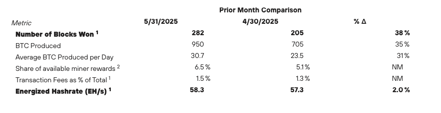 Голова та генеральний директор Мари, Фред Тіель, зазначив, що виробництво біткойна компанії в травні було найбільшим з моменту вдвічі, що відбулася в квітні 2024 року.