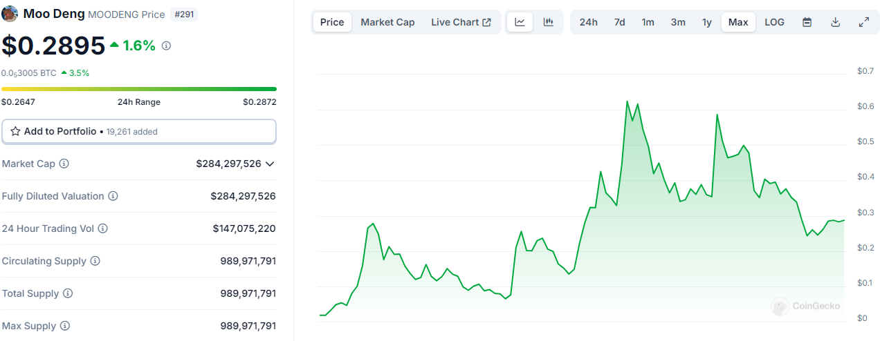 Глобальна вірусність Му Денга надихнула створити мемкойн на основі Solana, і деякі трейдери забезпечили значний прибуток до того, як токен мемів втратив майже 60% своєї пікової вартості.