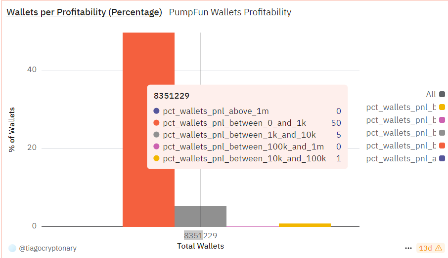 Понад 99% трейдерів на панелі запуску мемкойнів Solana Pump.fun втратили гроші або отримали прибуток менше 1000 доларів.
