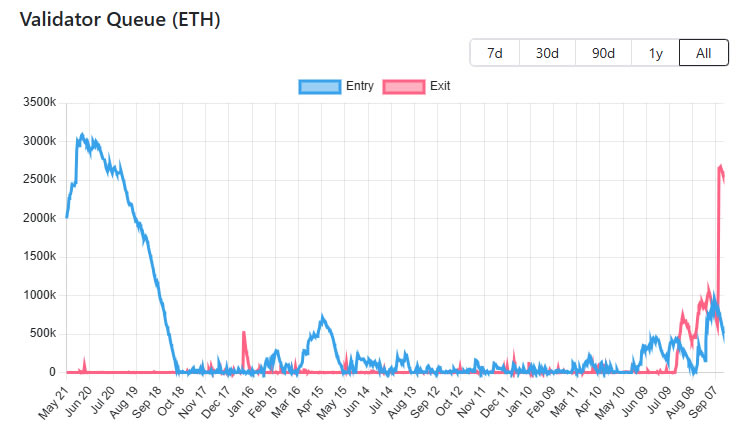 Черга виходу Ethereum занирилася за останні кілька днів, але залишається високою на 2,5 мільйона ETH. Однак значна частина цього – від фінансів печі після експлуатації.