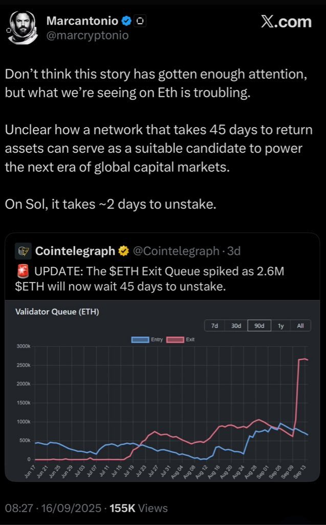 Його відповідь прийшла після керівника Defi Galaxy Digital, Майкла Маркантоніо, назвав довжину черги виходу «тривожним» на X і порівняв її з Соланою, яка потребує лише двох днів, щоб увімкнути. З тих пір він видалив посади.